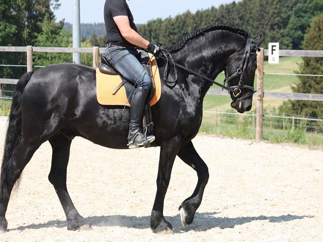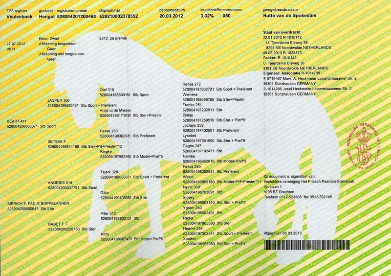 Durch seine tollen Bewegungen fiel er uns schon auf der Zuchtschau in Holland auf, wo er eine 2. Prämie bekam so dass wir ihn dann gleich mitgenommen haben.